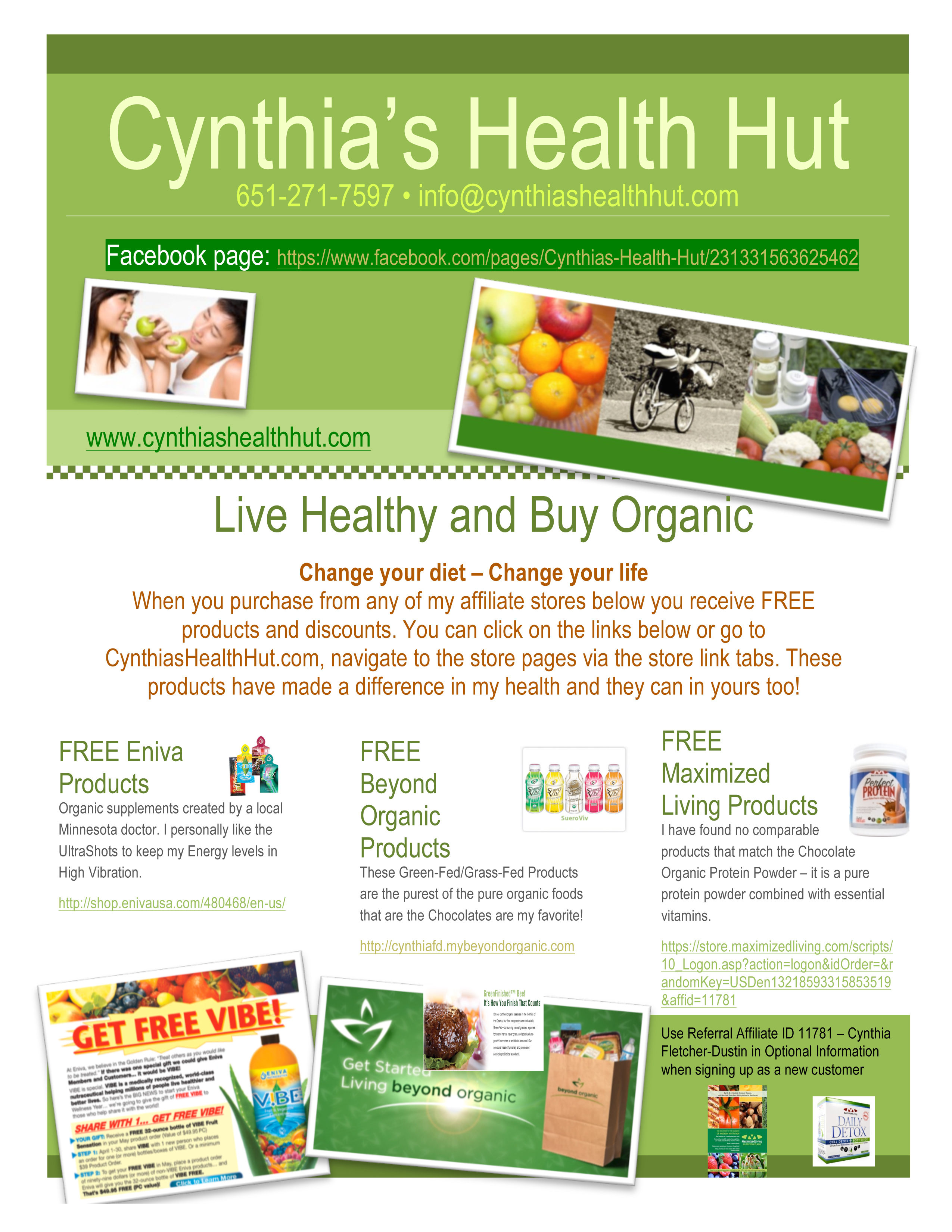 Cynthia’s Eniva site of healthy whole food supplements – http://shop.enivausa.com/480468